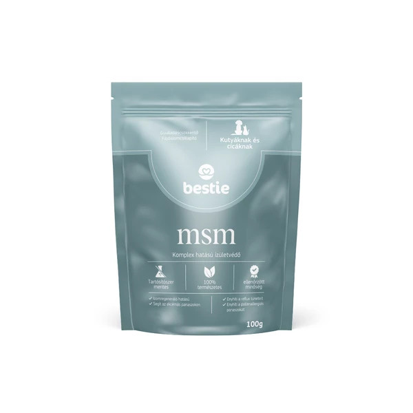 A természetes C-vitamin segíti az MSM hasznosulását, ezért ehhez a termékhez válaszd a Bestie csipkebogyóport is és adagold együtt. Krónikus ízületi probléma, diszplázia esetén Bestie kollagénnel és zöldkagylóporral kiegészítendő.